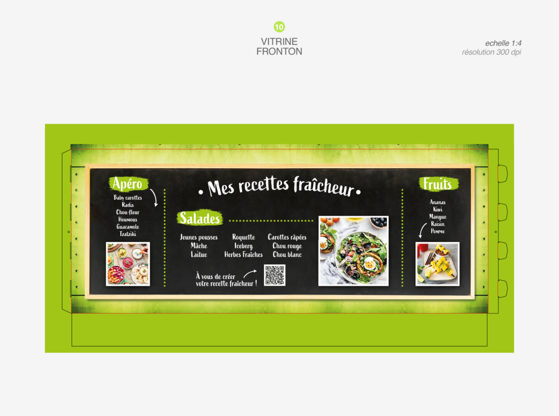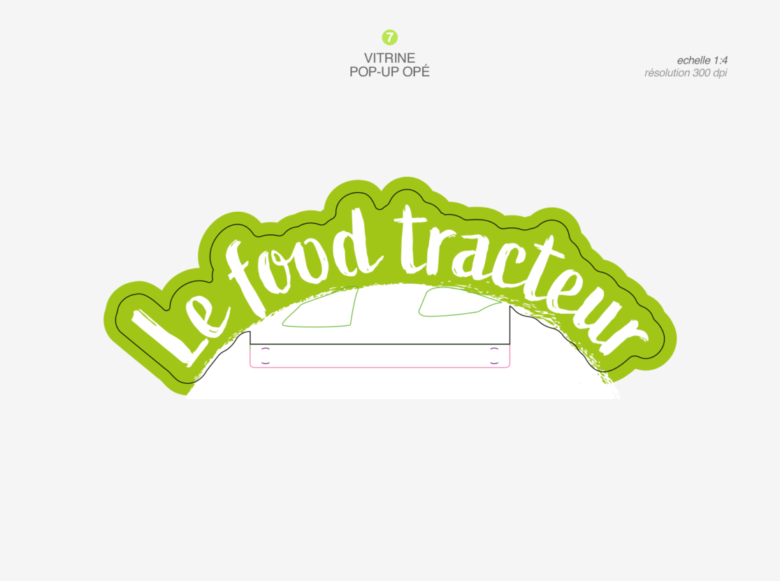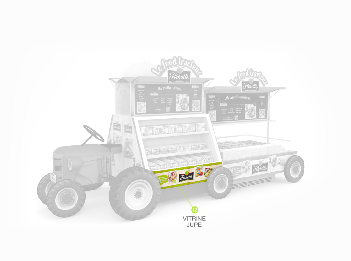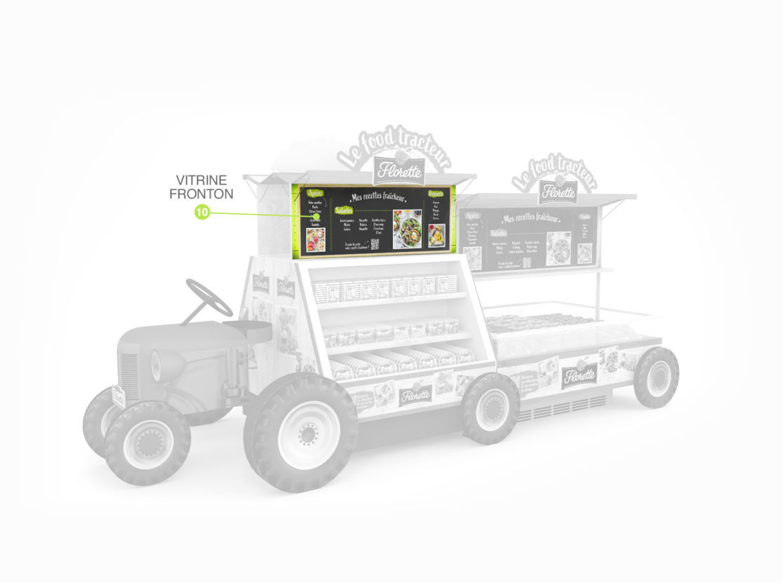 habillage de bac frais en magasin • retouche textures couleurs charte graphique • aperçu des différentes pièces du foodtruck • documents d’exécution