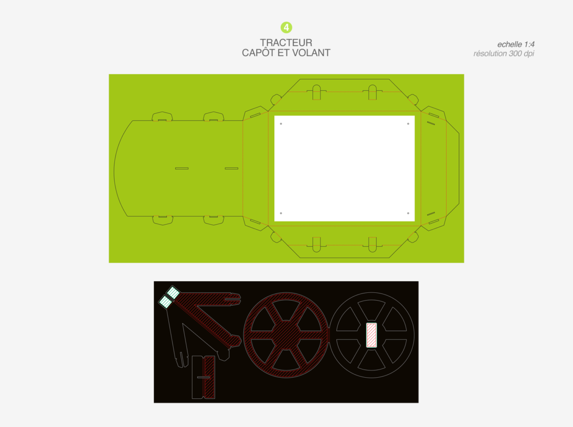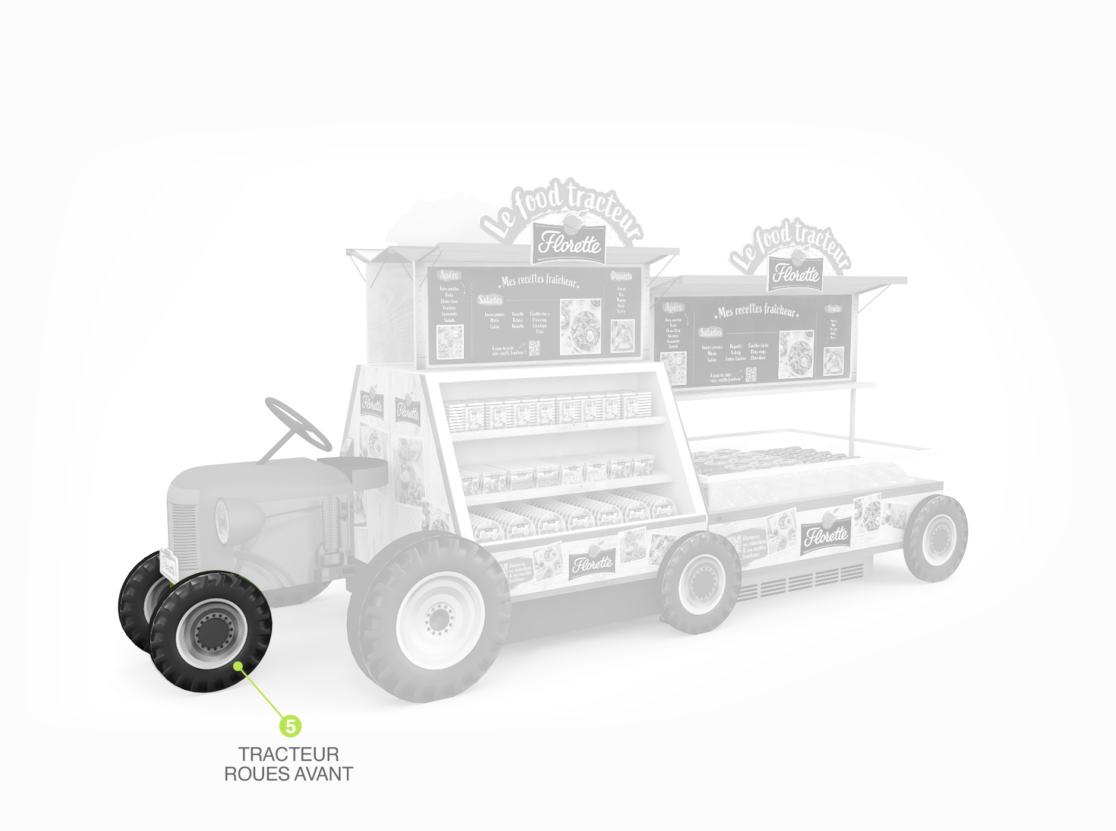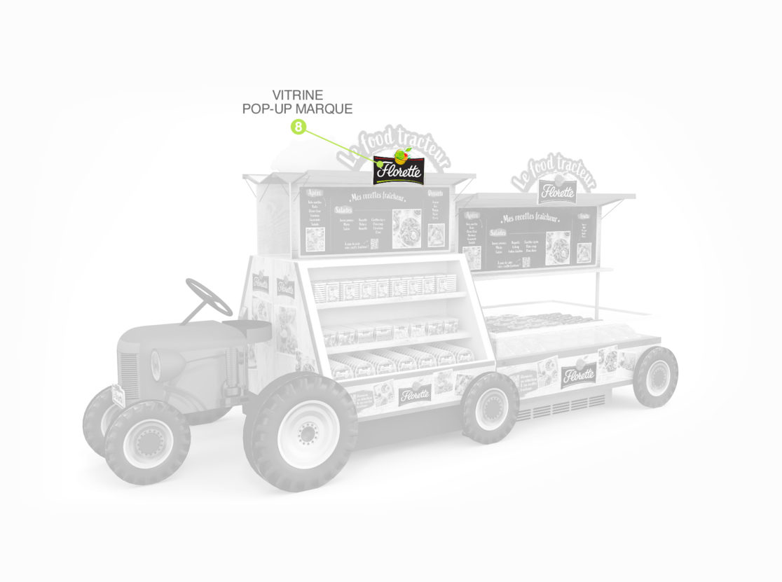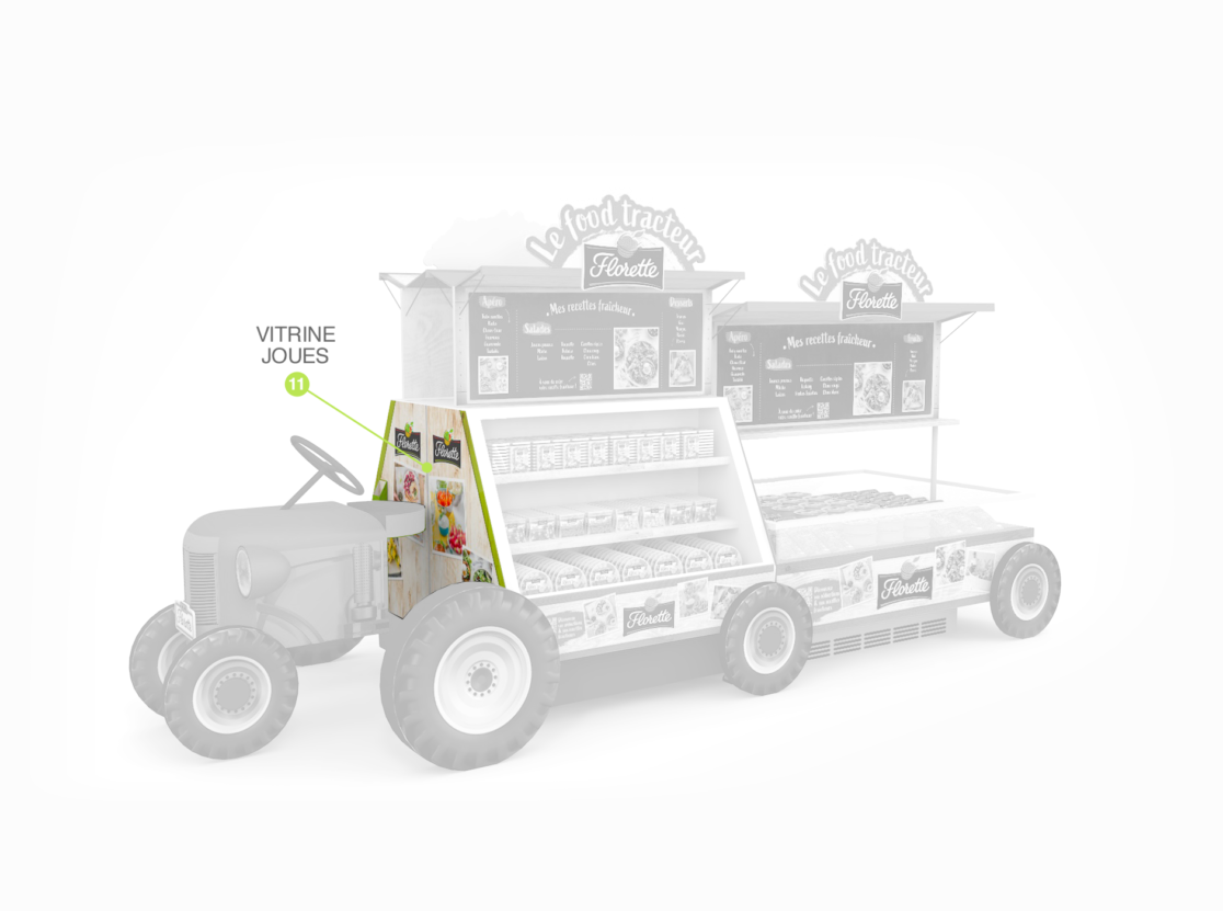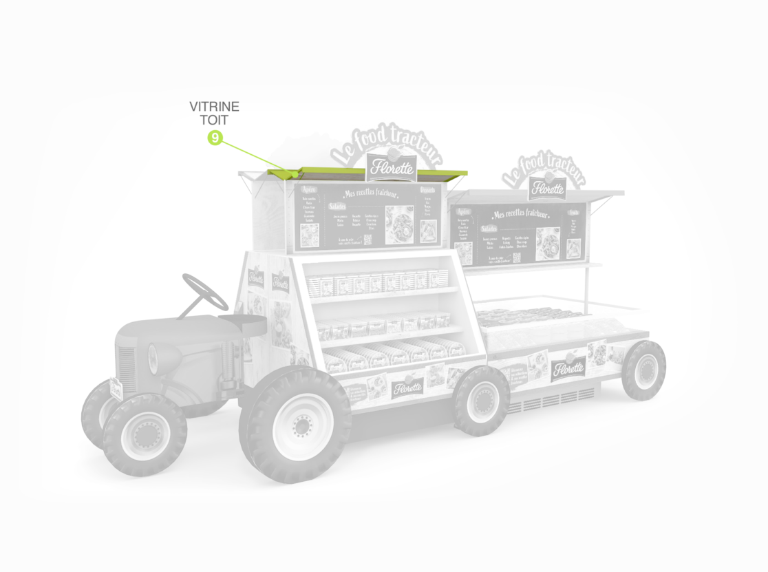 habillage de bac frais en magasin • retouche textures couleurs charte graphique • aperçu des différentes pièces du foodtruck • documents d’exécution